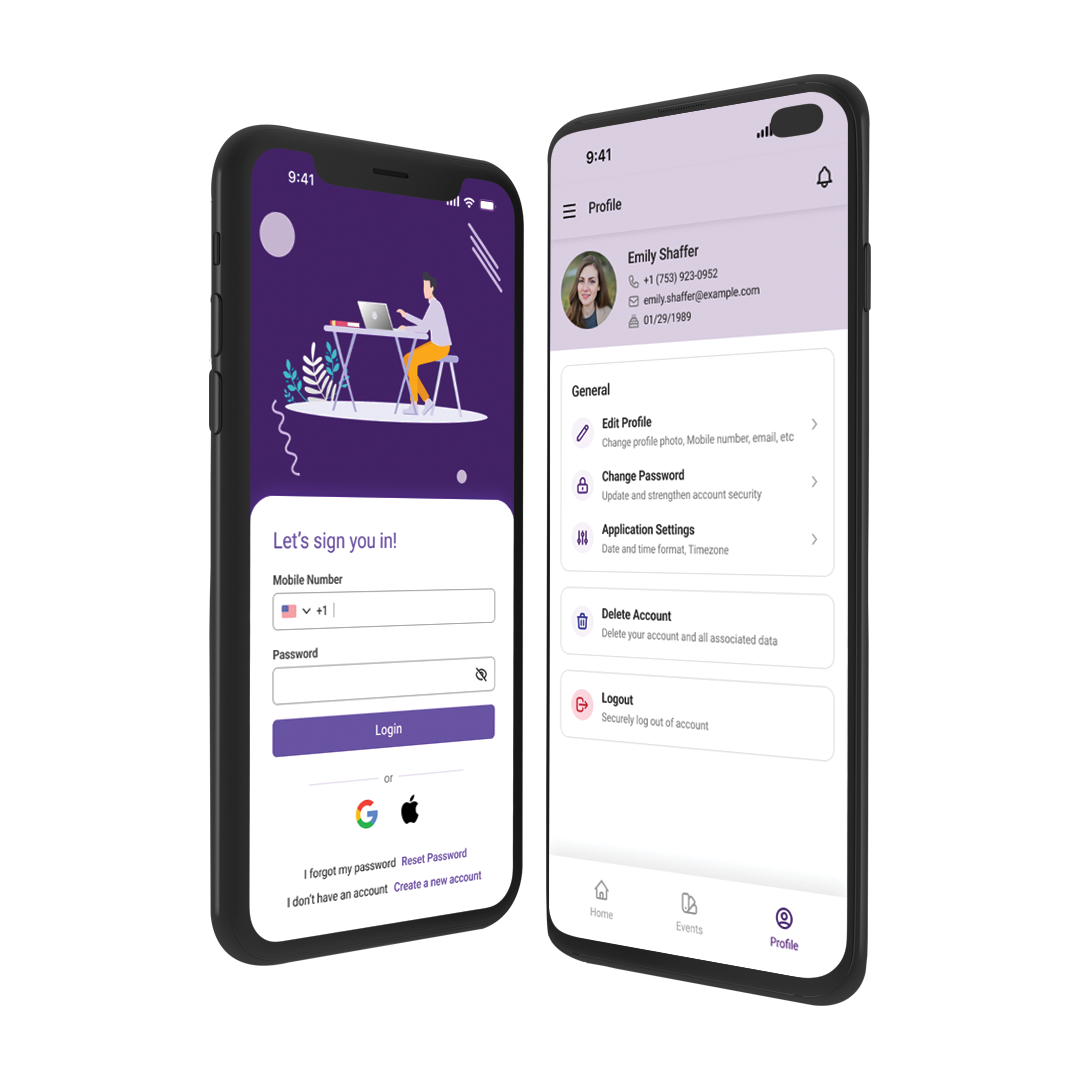 Manage events on the go with our sleek mobile app.